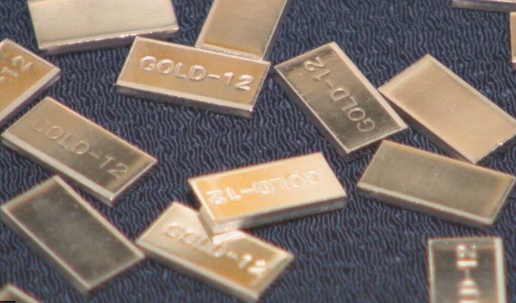 画像のような金銀パラジウム合金(通称:金パラ)のことです。
